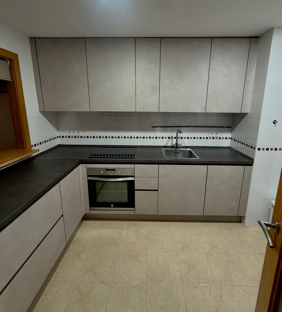 - Esta cocina destaca por su elegancia contemporánea, con un acabado totalmente gris que aporta equilibrio y armonía visual. Todas las puertas y módulos están fabricados con tableros de MDF o MF hidrófugos, materiales especialmente resistentes a la humedad, ideales para garantizar durabilidad y estabilidad en entornos exigentes como la cocina.