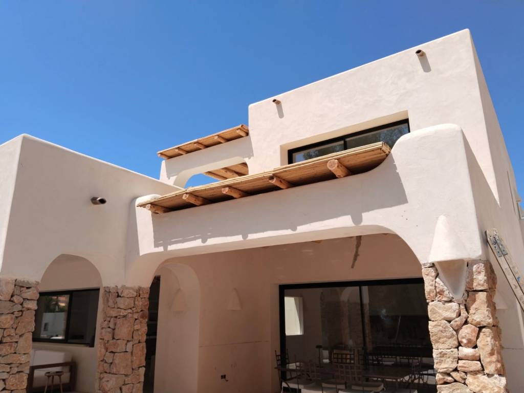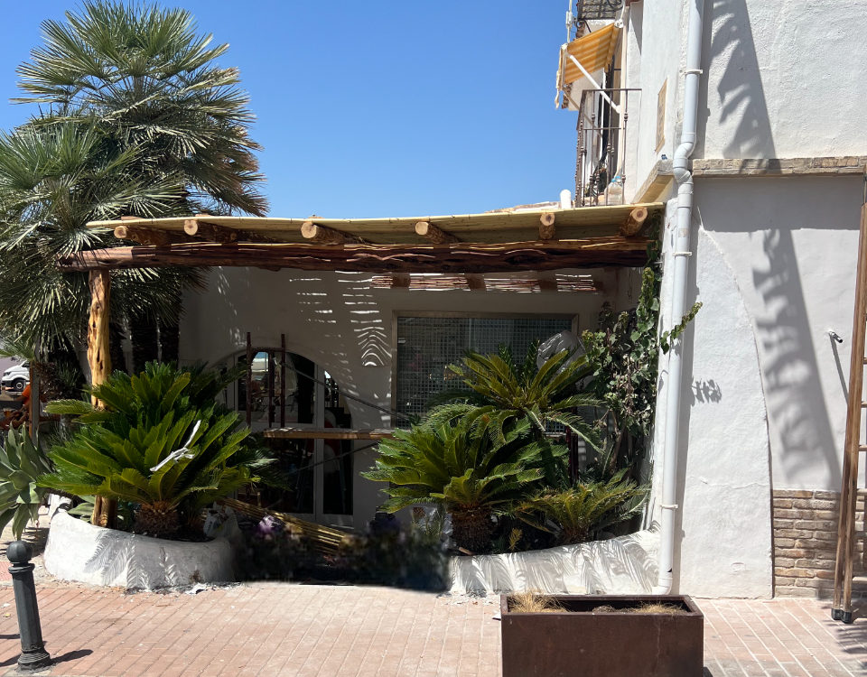 - Su diseño rústico-mediterráneo está pensado para ofrecer sombra y calma, elevando el valor estético y el confort del espacio exterior. La madera se trabaja conservando sus vetas naturales, aportando textura y profundidad, y conectando visualmente con la paleta cromática de la fachada.