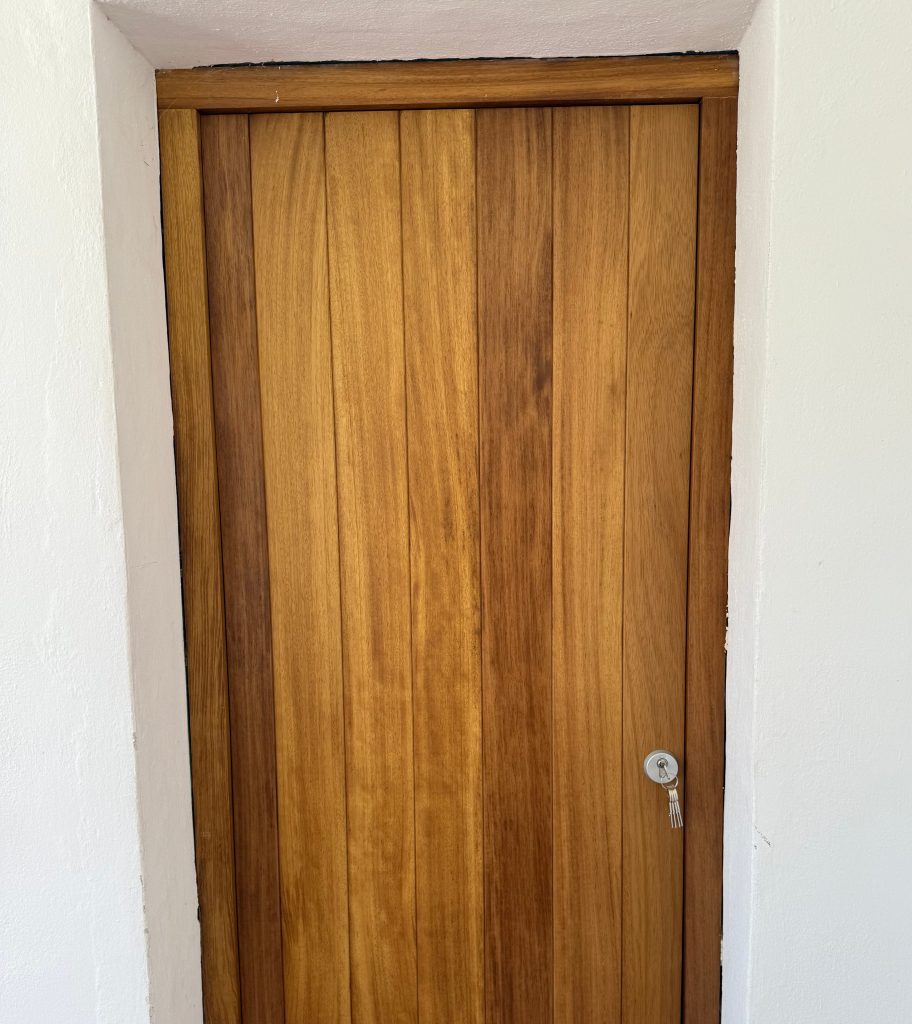 - Gracias a las propiedades del iroko, esta puerta es altamente resistente al agua, a la humedad y a las altas temperaturas, lo que la convierte en una opción perfecta para zonas costeras.